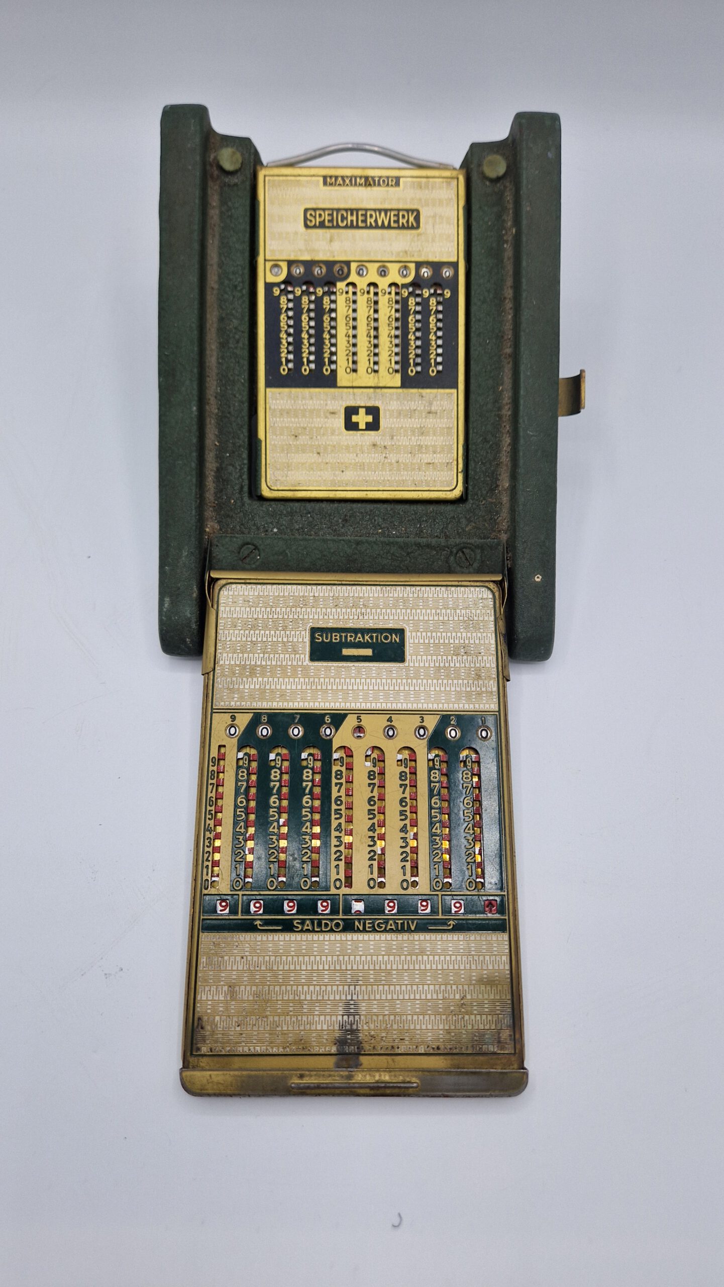 Der Griffeladdierer „Maximator“ gehört zu den anschaulichsten mechanischen Rechenhilfen des frühen 20. Jahrhunderts. Produziert wurden die Geräte Anfang der 1950er Jahre.